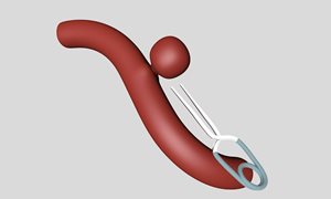 Een Woven Endo Bridge, oftewel WEB device, is een fijnmazig kubusvormig netje dat via het slangetje in het aneurysma wordt geschoven waarna het wordt uitgevouwen en in één keer het hele aneurysma afsluit.